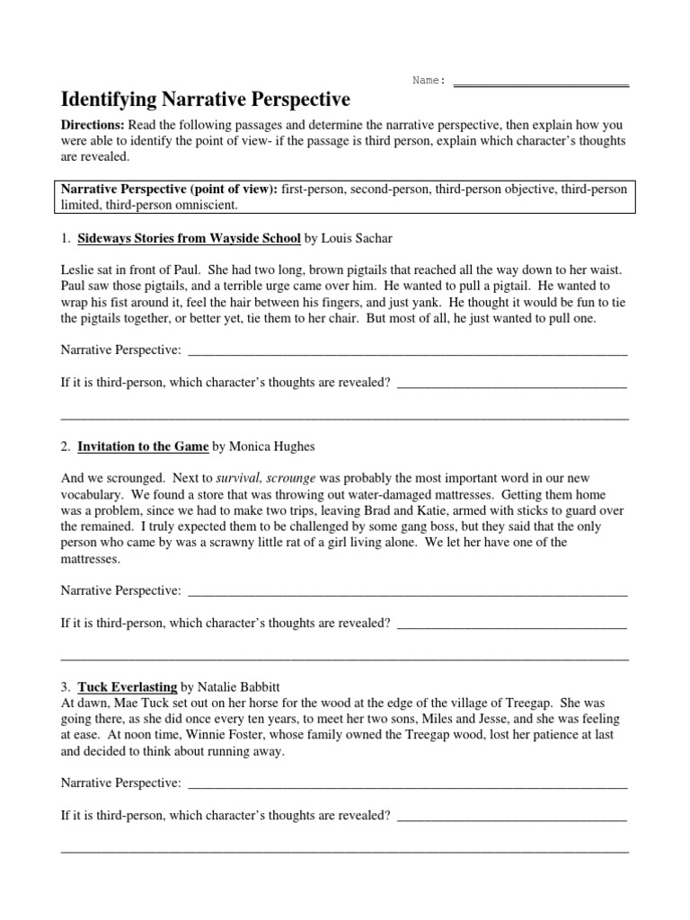 Recognizing the point of view is an important reading skill, but also helps students to adopt the appropriate narration for their own writing.be sure to check out all of our reading worksheets.